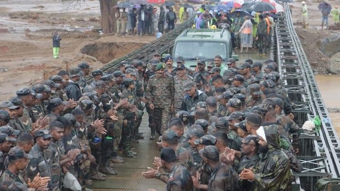 भारतीय लष्कराकडून वायनाडमधील बेली ब्रिजचे बांधकाम पूर्ण झाले आहे. पुलाची ताकद तपासण्यासाठी लष्कराने प्रथम आपली वाहने नदीच्या पलीकडे नेली. काम पूर्ण झाल्यानंतर बांधकामात सहभागी असलेल्या लष्कराच्या जवानांनी ‘भारत माता की जय’च्या घोषणा दिल्या. पुलाच्या बांधकामामुळे आता जड वाहनांना दरड कोसळण्याच्या ठिकाणी नेता येणार आहे.